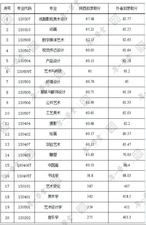 1、造型类、设计类、书法学专业:文化课成绩总分和专业课成绩总分达到我校划定的分数线,按综合分排名,择优录取(外语单科成绩不作要求)。