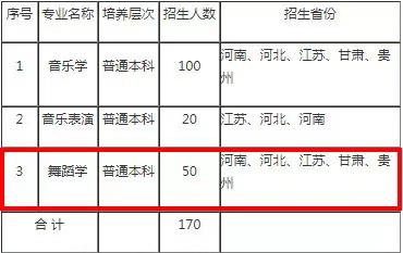 (2)。河南、河北、江苏、甘肃、贵州考生报考我校音乐学、舞蹈学专业,需要参加我校组织的校考,音乐表演专业只向江苏、河北、河南招生。广西、山西、安徽、福建、江西、山东、广东、陕西、甘肃、辽宁等省、自治区使用考生所在省份统考成绩招生。