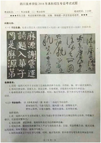 四川美术学院2018年书法类校考考题(重庆考点-全国考生)
